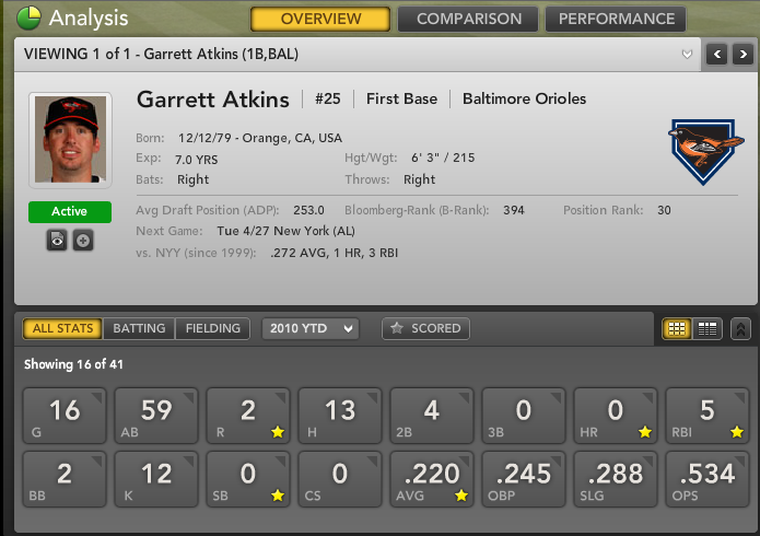 The Baltimore Orioles’ signing of Garrett Atkins this off-season was as non-descript of a move as you can get. Yet at the time of the signing, the move struck me as odd. Even before the season started, Baltimore was seen as a fourth- or fifth-place team in baseball’s best division. Therefore, handing nearly $5 million to a below-average corner infielder on the wrong side of 30 didn’t make much sense.