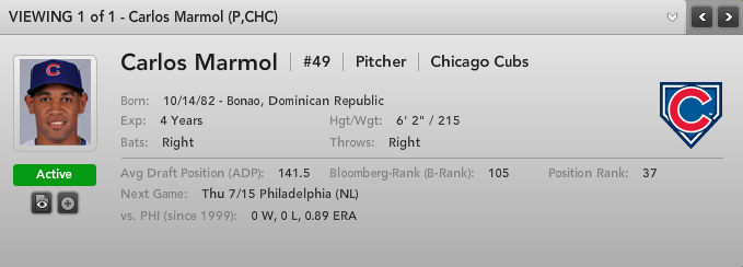 For more on Carlos Marmol and dominating closers, check out Bloomberg Sports’ Fantasy Kits.