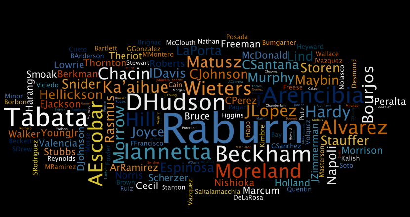 Finally, a look at some preseason sleeper favorites by others. Before the season began, we collected names being touted as breakouts and put them into a word cloud. The bigger the name, the more they were hyped…