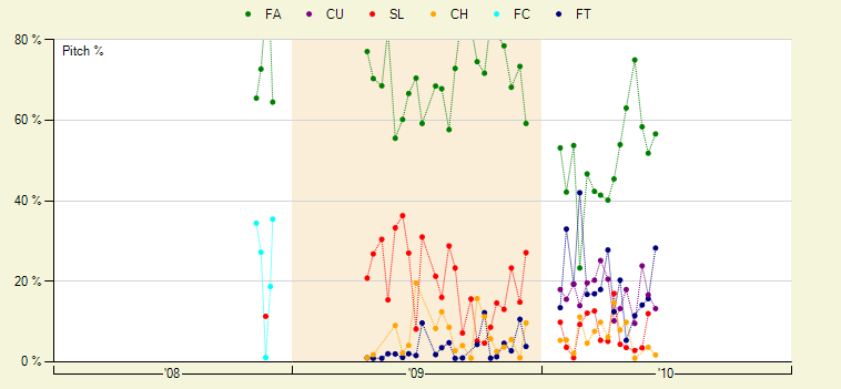 Those stats include 12 starts in 2009, with 79 innings pitched (roughly six and a half innings per start, even though that’s impossible), a 3.39 ERA, a strikeout-to-walk ratio of 7.4, and a win-loss record of 7-4. Believe it or not, Lee is probably better than some of those stats suggest. Over the past three seasons he’s compiled a 2.98 ERA, a 48-25 record, and a 5.64 strikeout-to-walk ratio between four different teams.