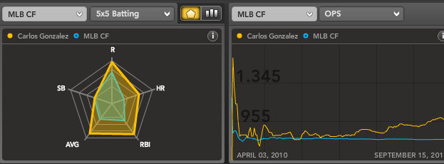 For more on Carlos Gonzalez and other power/speed outfielders, check out Bloomberg Sports’ Fantasy Tools.