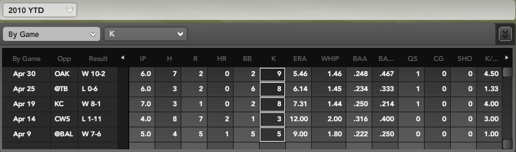 strikeout rate for a starting pitcher. His 17 K, one-hitter against the