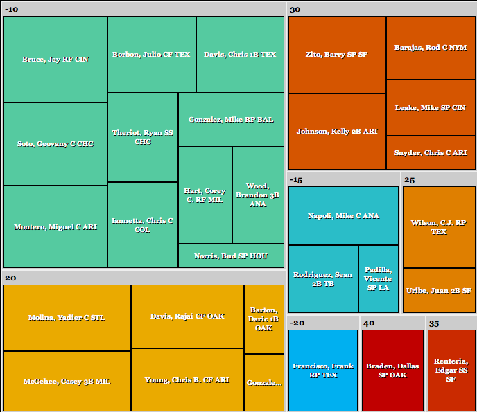 According to B-Rank (Bloomberg’s proprietary ranking of all players), Wilson’s stellar relief numbers earn him an overall ranking of 336. In most leagues he is not even drafted. On the other hand, Joe Saunders ranks 271th despite posting a nearly league average 4.60 ERA and an ugly 5.17 FIP (Fielding Independent Pitching, a stat that runs along a similar scale to ERA, while stripping out factors a pitcher can’t control such as defense and luck). He is also drafted in almost every league regardless for format. This is just another example of the value of league average starting pitching over above average relief