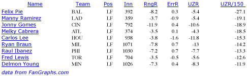 The last piece of optimism arises when we consider defense. Not normally important when considering fantasy baseball, Ramirez has been so poor defensively that it had begun to cost him playing time. Since defensive statistics have been kept at FanGraphs.com, he has ranked in the very bottom of the outfield defensive rankings. Only one player with as many as 350 innings in left field this year has performed worse than Ramirez, for example. With the benefit of the DH – his new full-time position – he won’t have to stumble around the outfield anymore and should get his full share of at-bats. Maybe he’ll even stay healthier without the added stress on his legs and back.