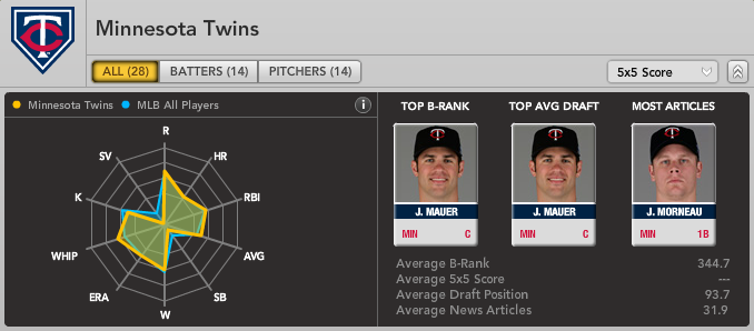 Despite playing in the same division as Joe Mauer, don’t expect Mauer-like production, at least not right away. Meanwhile, looking at the man Santana indirectly replaced, Victor Martinez, we may have a more apt comparison. If Santana is on your waiver wire, put in a claim immediately in all mixed-league and AL-only formats.