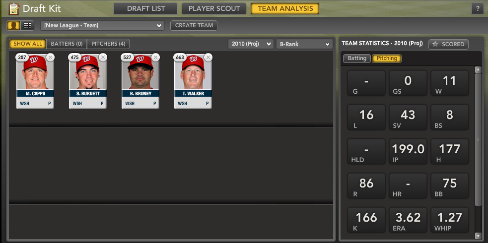 Former Pittsburgh Pirates’ closer Matt Capps figures to start the season with the 9th-inning job for the Nats. But Capps ranks among the shakiest closers in the game, following his ugly 5.80 ERA last year with more struggles in spring training. That could leave the door ajar just enough for Bruney to land some save opportunities. Bloomberg Sports projects Capps to finish with 23 saves and Bruney with 11. The realty is Bruney, who B-Rank suggests is the 33rd most valuable fantasy reliever in baseball, could find himself in the position of being the 2010 version of David Aardsma.