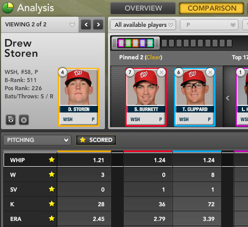 This is not an open-and-shut case. Storen doesn’t have the obvious flaws that Clippard does, and he also doesn’t have the platoon split that Burnett has shown so far. Those factors, plus Storen being the 10th pick in the draft and thus someone the club would more likely lean on, make him the man to pick up. Burnett may steal the odd save when a lefty-heavy lineup comes up in the ninth, but Storen should get most of the Nationals’ saves for the rest of this season, and in future seasons.