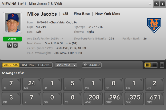 For more on upcoming young players like Ike Davis, check out Bloomberg Sports Fantasy Tools.