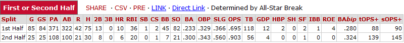 Aside from the massive number of strikeouts which are typical for a three outcome hitter (home runs, walks, and strikeouts), groundball outs were also a problem for Pena this past season. His 44.9% groundball rate was his highest total in any full-season.