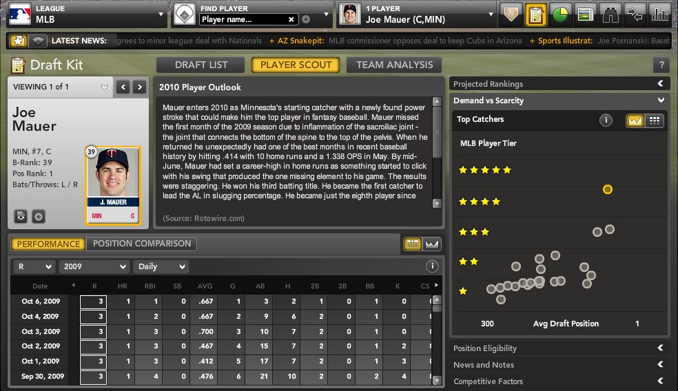 Say you’re preparing for your fantasy draft, targeting Joe Mauer as