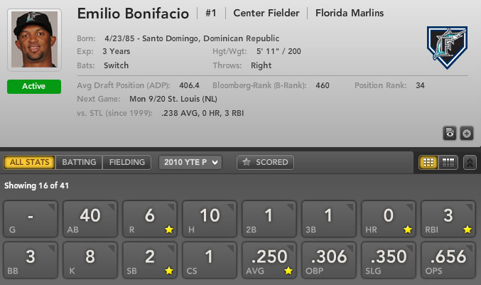 That brings us to Emilio Bonifacio and his role on the Florida Marlins this year. With the underwhelming Wes Helms the other option at third base, the speedy infielder has received ample playing time at the hot corner, while also backing up the starting outfielders. He has produced for fantasy owners too, hitting .283 with nine stolen bases in just 166 plate appearances (with three of those steals coming in September). Managers in leagues of any kind could easily get a speed boost from him right now, and they’d be forgiven.