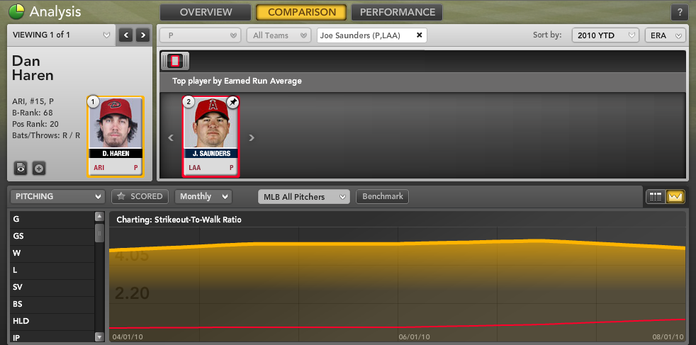 On the surface, Haren doesn’t look like a “significant” upgrade over Saunders. Both pitchers have sub-.500 win-loss records and near-matching ERAs around 4.60. That’s where the similarities end.