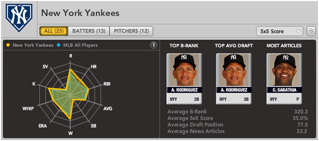 New York comes into the season as not only a juggernaut in real life, but in the fantasy realm as well. Their offense is anchored by the best infield in baseball, led by Alex Rodriguez, who fully healthy should go back to putting up MVP-type numbers. The infield is rounded out by Derek Jeter, Robinson Cano, and Mark Teixiera, each of whom is capable of ranking in the top 3 at their respective positions. New addition Curtis Granderson should flourish in hitter-friendly Yankee Stadium – he hit 30 homers in far less friendly Comerica Park last year. Home plate is once again manned by Jorge Posada, who even given his advanced age should put up above-average numbers.