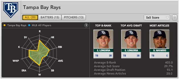 The pitching staff is once again led by James Shields and Matt Garza, with Garza a popular pick for a breakout season; both Shields and Garza ranked among the unluckiest pitchers in the baseball for run support, and could both win more games with a little more luck on that front. Jeff Niemann, David Price and Wade Davis all offer upside as well, with Davis penciled in as the fifth starter, with a chance to compete for Rookie of the Year honors. Rafael Soriano has looked shaky in his first outings as the Rays’ new closer and has a history of injuries. J.P. Howell could make a good insurance policy for Soriano, assuming Howell himself can return healthy in the near future.