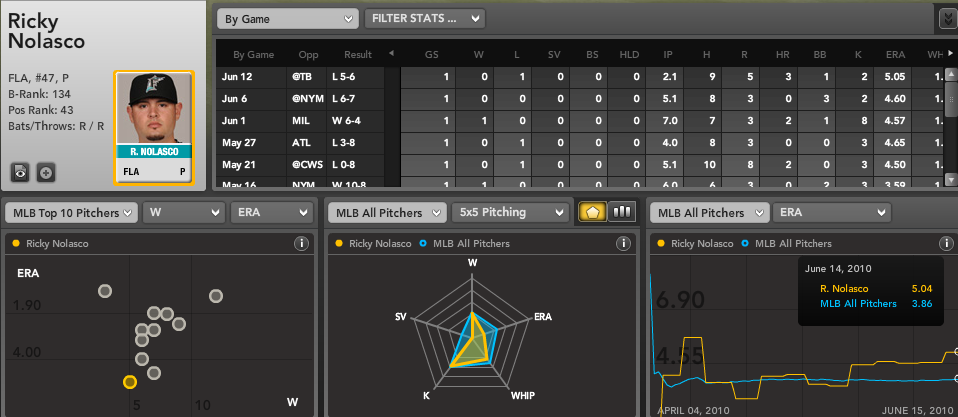 Going into last season, Ricky Nolasco‘s solid rookie campaign pointed to a budding star poised to make a large fantasy impact. He finished the year with a solid 13-9 record for a decent Florida Marlins club, but also put up a disappointing 5.06 ERA — a full run and a half higher than his previous season.