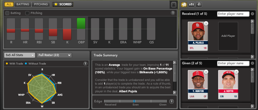 like these aren’t the easiest to pull off. As the Bloomberg Sports tool notes, “As a rule of thumb, in an unbalanced trade you should aim to acquire the best player in the deal.”