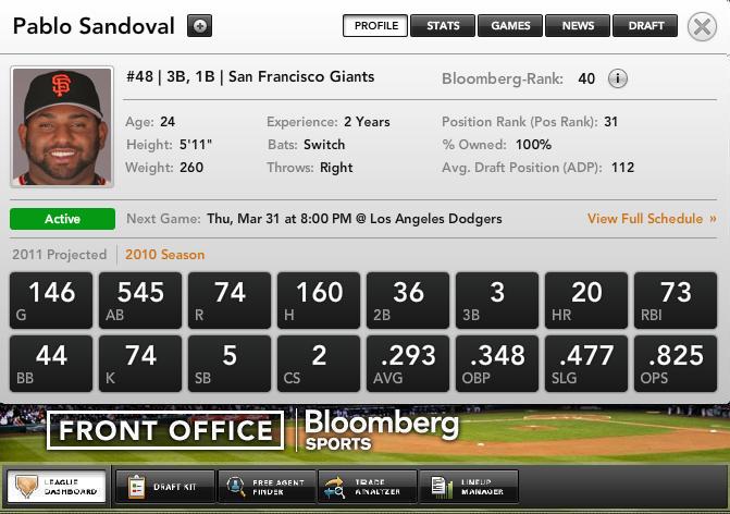 According to Bloomberg Sports’ projections, Sandoval should fall right in between. Our projections peg the Panda with a .293 average and an OPS of .825. In terms of power, the system projects him to once again top the 20 home run plateau with a steady dose of doubles mixed in.