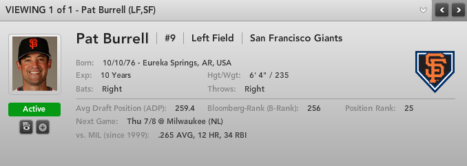 For more on Pat Burrell and potential waiver wire pickups, check out Bloomberg Sports’ Fantasy Kits.