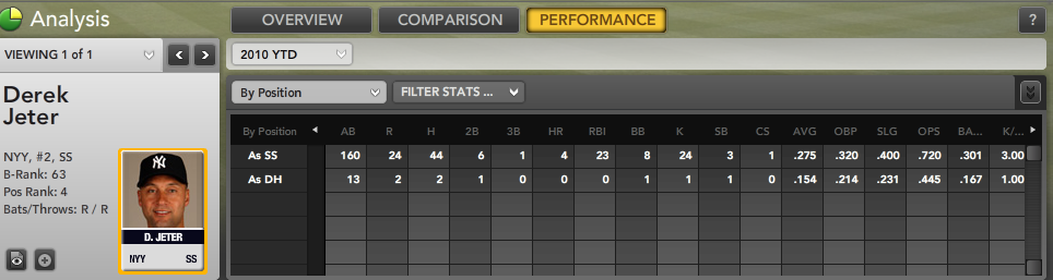 Nearly 50 games into the regular season and Derek Jeter does not look like Derek Jeter. It starts with his .275/.319/.399 slash line, which looks like it belongs to Jeter’s backup in any given year. Jeter is walking in fewer than 5% of his plate appearances – a career low – and striking out more than in recent years. Is there any upside to keeping the Yankees’ captain, or is this the beginning of the end?